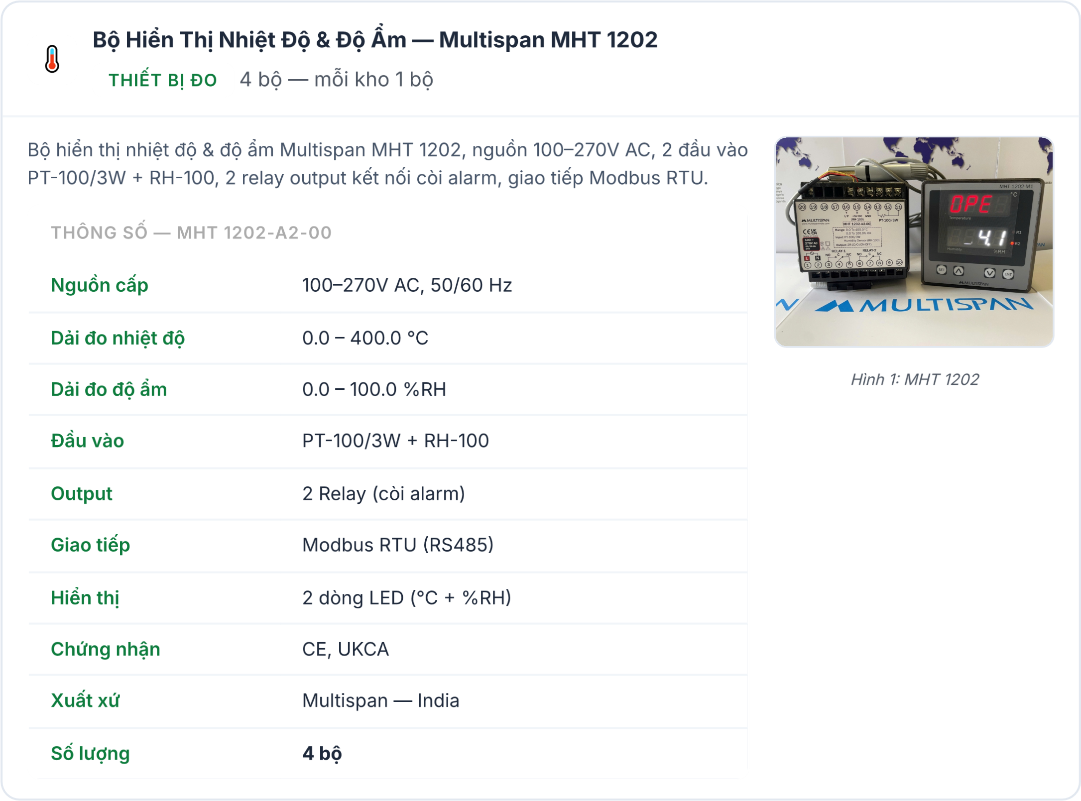 | 1 | Bộ hiển thị nhiệt độ & độ ẩm Multispan MHT