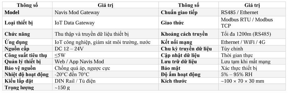 Nếu bạn đang tìm kiếm một thiết bị Gateway IoT ổn định, dễ tích hợp và phù hợp cho hệ thống giám sát công nghiệp, Navis Mod Gateway là giải pháp đáng tin cậy.